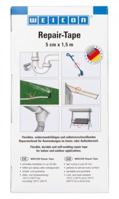 A javítószalag külön szerszámok nélkül alkalmazható. Megbízható és tartós javításokra használható az iparban, a kereskedelemben, a háztartásban, a kempingezésben és a barkácsolási szektorban.