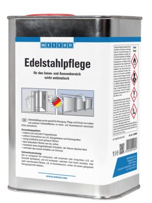 A WEICON Rozsdamentes acél ápoló megtisztítja az ujjlenyomatokat és tartósan megakadályozza azok újbóli megjelenését. Eltávolítja a zsíros