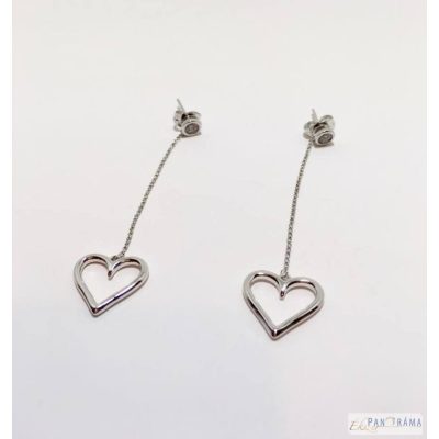White Gold Filled anti-allergén, nikkel és ólom mentes fehér cirkónia kristállyal díszített fülbevaló . Mérete 6 cm hosszú, a szív 15 mm