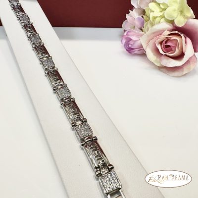 White Gold Filled antiallergén, ezüst színű karkötő dupla kapcsolóval, kristályokkal díszítve.