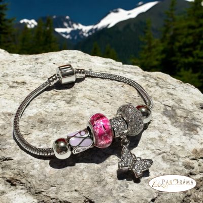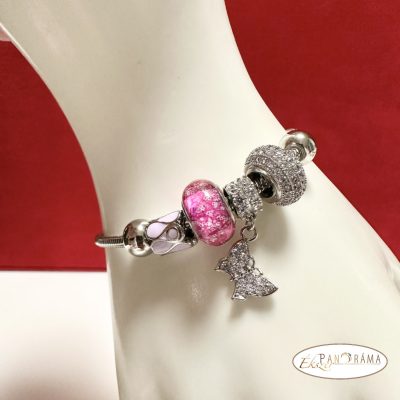 Pandora jellegű, a megszokott kiváló minőségben, a rajta lévő sharmok kristállyal díszítettek