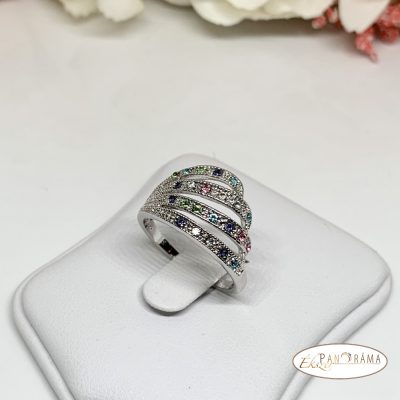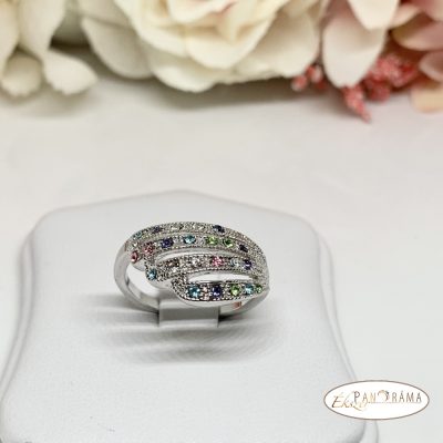 White Gold Filled ezüst színű gyűrű, gyönyörű színes kristályokkal