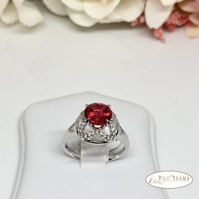 White Gold Filled ezüst színű gyűrű, gyönyörű piros kristállyal