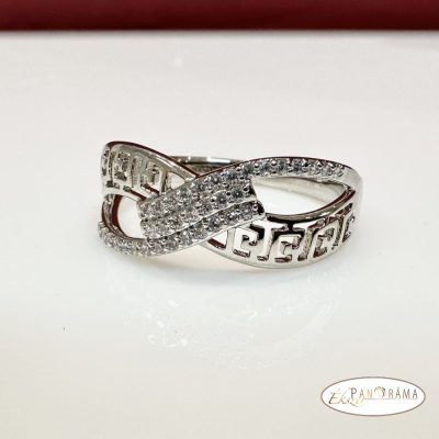 White Gold Filled ezüst színű gyűrű, gyönyörű kristályos fejjel, görög mintával