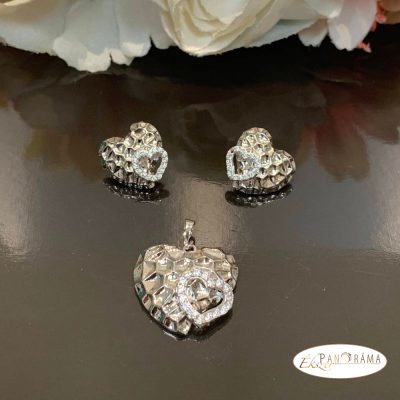 White Gold Filled Medál és beszúrós Fülbevaló szett - Heart