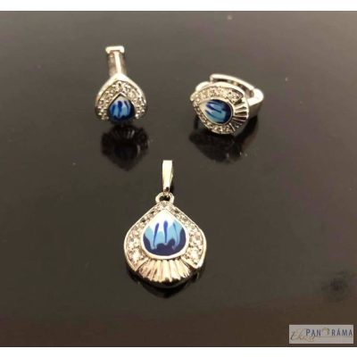 White Gold Filled Medálos Nyaklánc és Fülbevaló Szett - Eden Kék