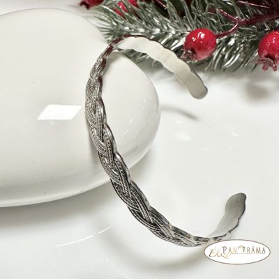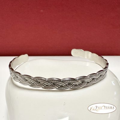 White Gold Filled anti- allergén nyitott , ezüst színű, fonott mintázatú karperec.
