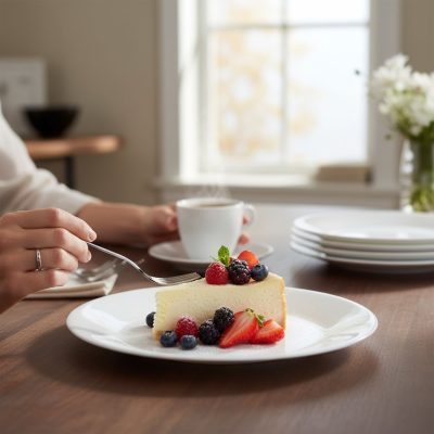 A 19 cm-es méret tökéletes például egy sajttorta friss gyümölcsökkel vagy egy csokoládé desszert tálalásához, ahol a részletek és a kompozíció dominál.