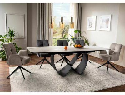 A Wing Brego forgószék egy modern és elegáns bútordarab, amely tökéletesen ötvözi a funkcionalitást és a designt. A szék sötétszürke Brego szövettel van kárpitozva, amely kellemes tapintású és tartós. A matt fekete fém váz stabil alapot biztosít, míg a 180 fokos forgási képesség és az auto-return funkció praktikus használatot tesz lehetővé.