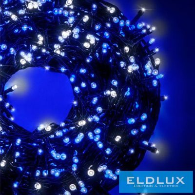 • WISDOM fényfüzér hideg+kék fényű 180LED 9m zöld kábellel 8 fun. IP44