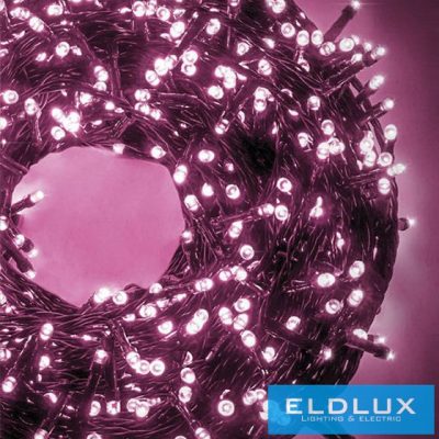 • WISDOM fényfüzér rózsaszín fényű 300LED 15m zöld kábellel 8 fun. IP44