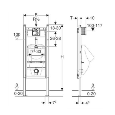 • Keret felső kereszttartó nélkül, Geberit Duofix falsík előtti szerelőkészlet fogadására előkészítve