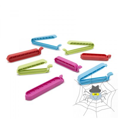 Különböző méretű és színű, műanyag zacskózáró csipesz szett.
