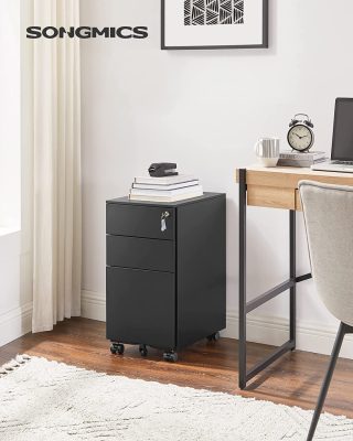 Valami jót a munkaterületéhez: Belefáradt az irathalmok keresgélésébe, hogy megtalálja a nagyon szükséges dokumentumot?És hol volt már megint a ceruza?Ez a Songmics iratszekrény 3 fiókjával és 1 fiókbetétével elnyeli a szekrényen lévő rendetlenséget. Emellett a zár mögött biztonságosan tárolhatja a fontos dokumentumokat az irodában.
