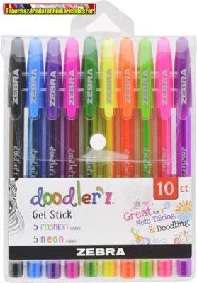 ZEBRA Doodler'z Neon & Fashion Zseléstoll készlet, 0,33 mm, kupakos, 10 vegyes szín