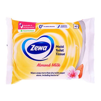 A Zewa Almond Milk nedves toalettpapír gyengéd és kényeztető gondoskodást nyújt, így garantálja a kiemelkedő tisztaságérzetet. Bőrsemleges pH-értékű, toaletten lehúzható és biológiailag lebomló.