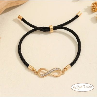 • Zsinóros karkötő kristályos végtelen díszítéssel, csúszózárral -fekete,arannyal