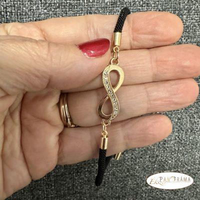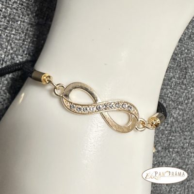 Zsinóros karkötő kristályos végtelen díszítéssel, csúszózárral -fekete,arannyal