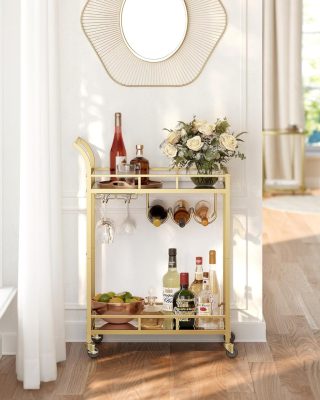 • [Gurulj vagy maradj] Gurítsd oda, ahol a bulidnak szüksége van rá, vagy parkold le a kanapéd mellé, hogy kávét szolgálj fel a buli után – a 4 kerékkel, amelyek közül 2 zárható, ez a bárkocsi mindig az Ön rendelkezésére áll
